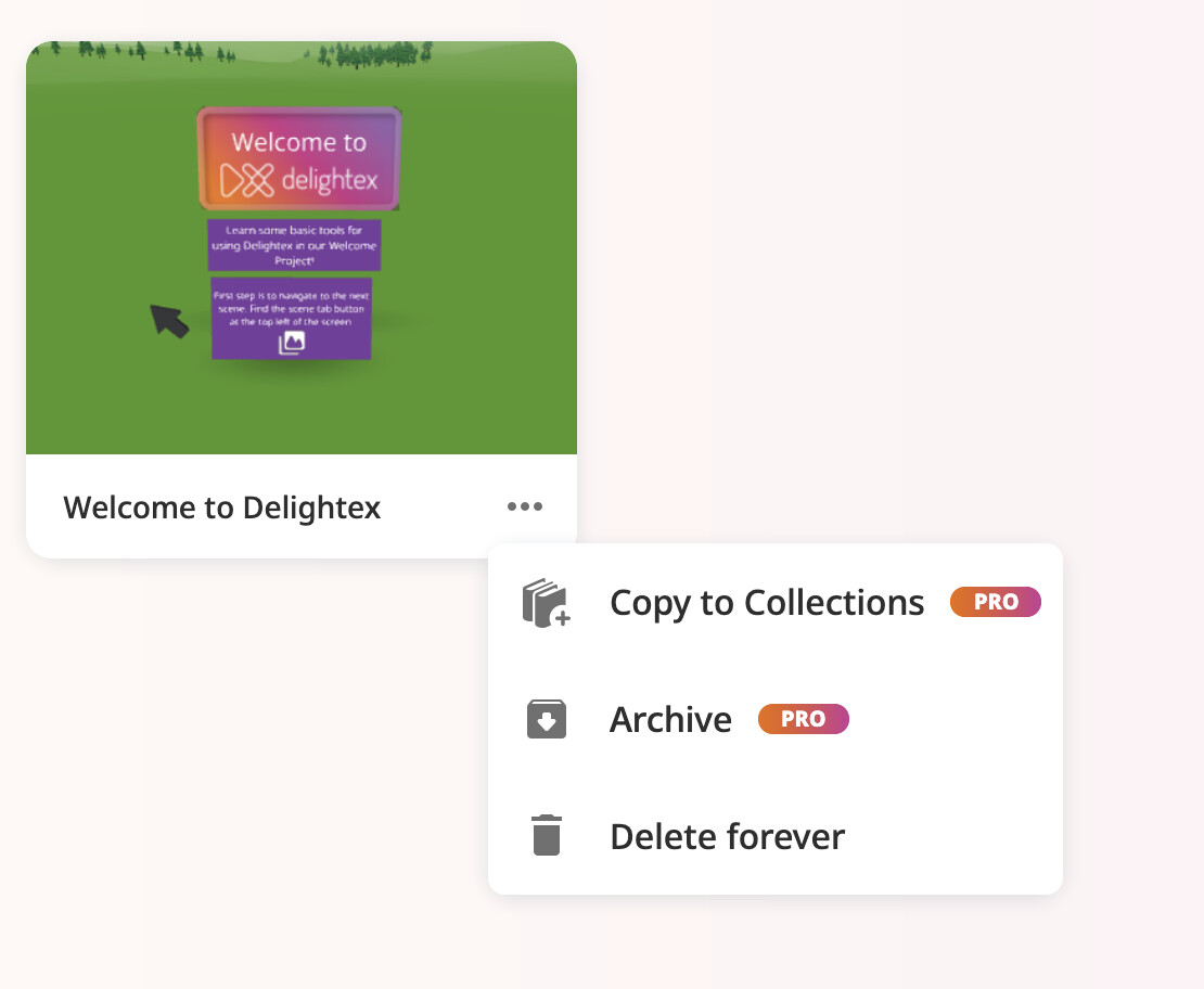 Thanks for the response! Unfortunately that doesn’t seem to be an option for the “Welcome to Delightex” project and I’m not sure why. Here are the only options I see when clicking on the three dots on the project: