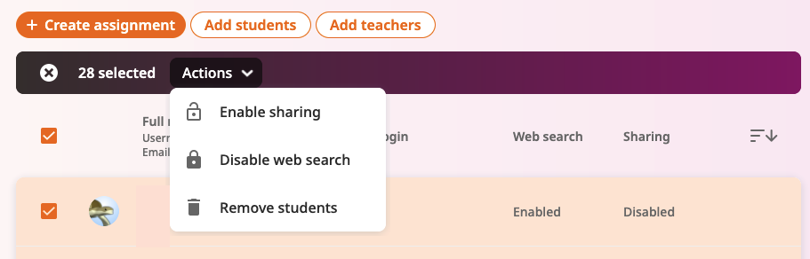 In the User list under Licence Plan, there used to be an option to Enable or Disable student sharing of their projects. How do I change student settings to allow them to share their projects?