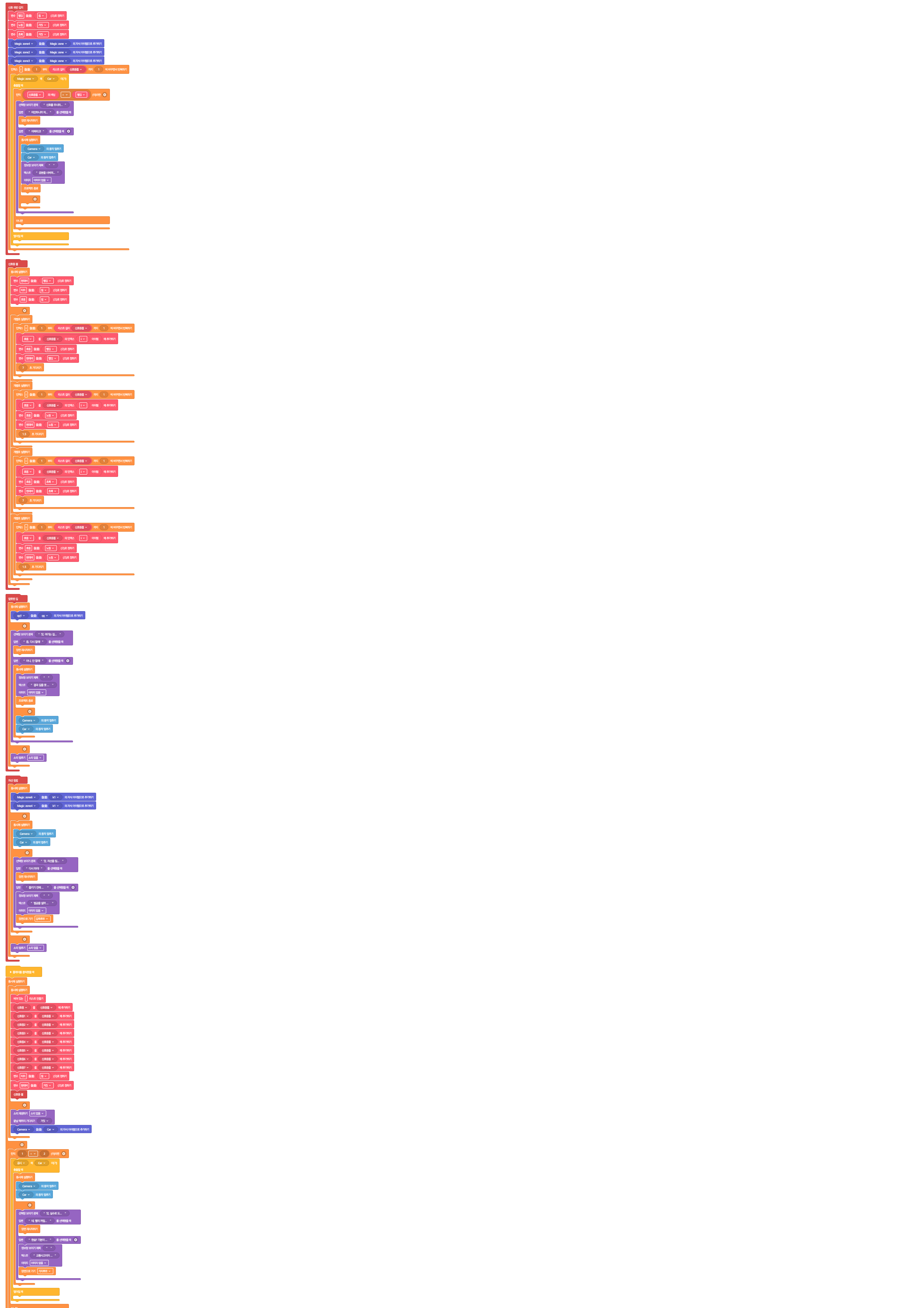I’m new to coding, and there may be something strange about translating it into Korean. The [signal traffic light] and [signal violation detection] functions just move the way they want. [signal traffic light] repeats red 7, yellow 1.5 seconds, green 7, yellow 1.5 seconds, and yellow 1.5 seconds. And if a car crashes into a magic zone at a crosswalk, a selection window will be displayed if [signal traffic light] is red, and if [signal traffic light] is green or yellow, I hope nothing happens the way I want it to, but it doesn’t work the way I want it to. I can’t give up because it’s my school homework. Please help. Help. Help. Help. Please help. Help. I need help. ![]()
